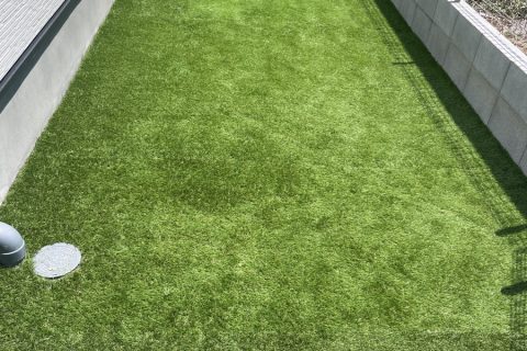 新築のご自宅にみずみずしい人工芝が見事に調和し、爽やかさと華やかさを演出しています🍀
